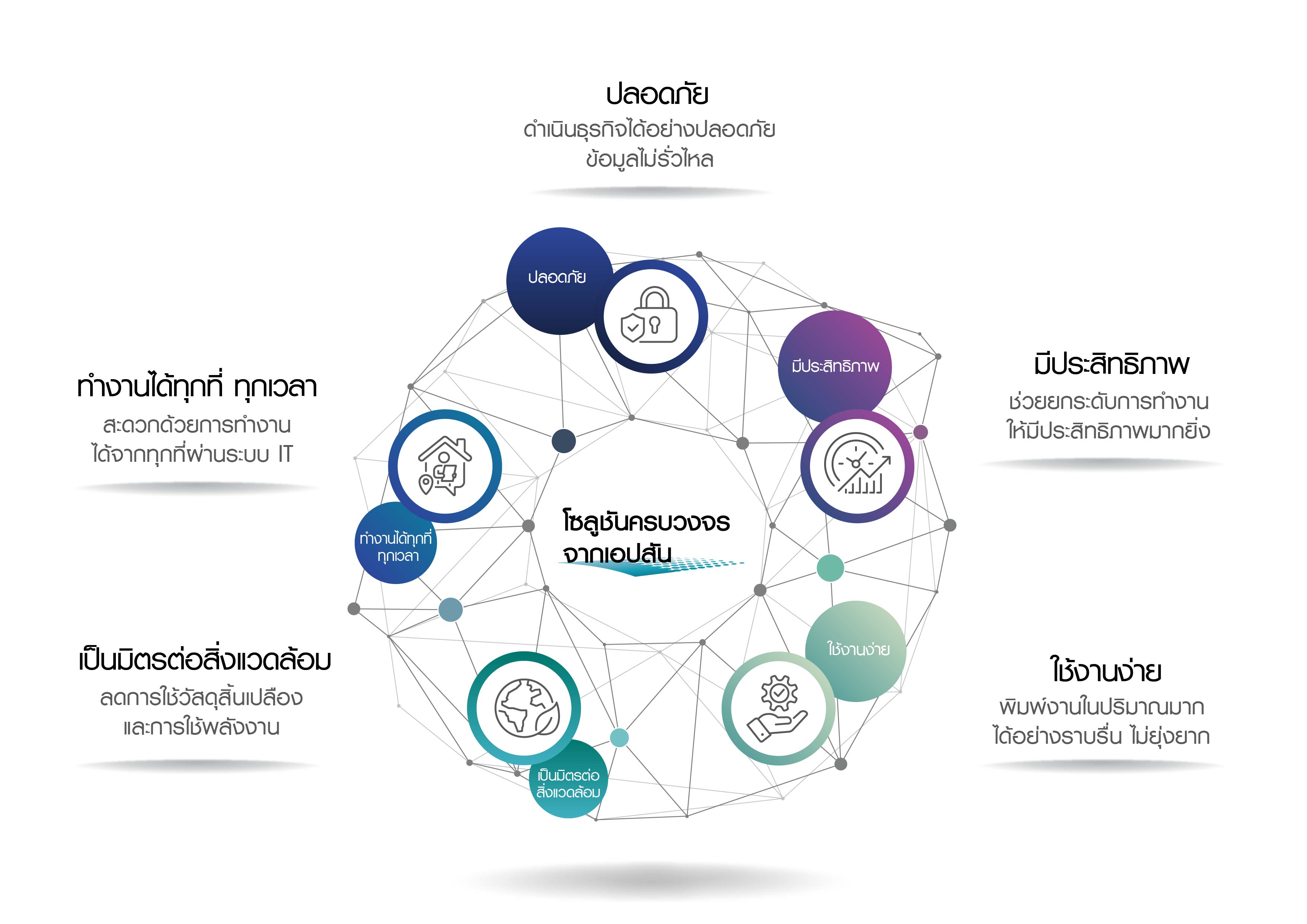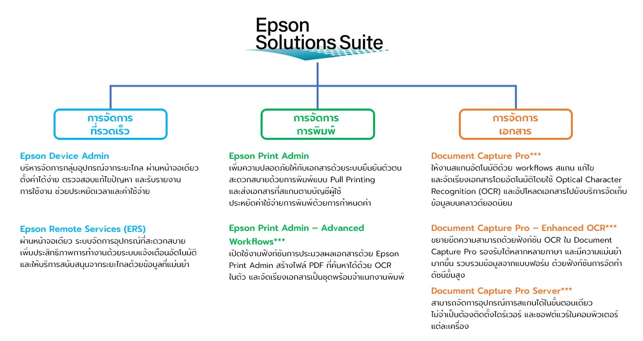 - รองรับการเชื่อมต่อกับซอฟต์แวร์ต่างๆ ได้ง่ายด้วย Epson Open Platform เพื่อปรับให้เหมาะกับการใช้งานในธุรกิจของคุณ